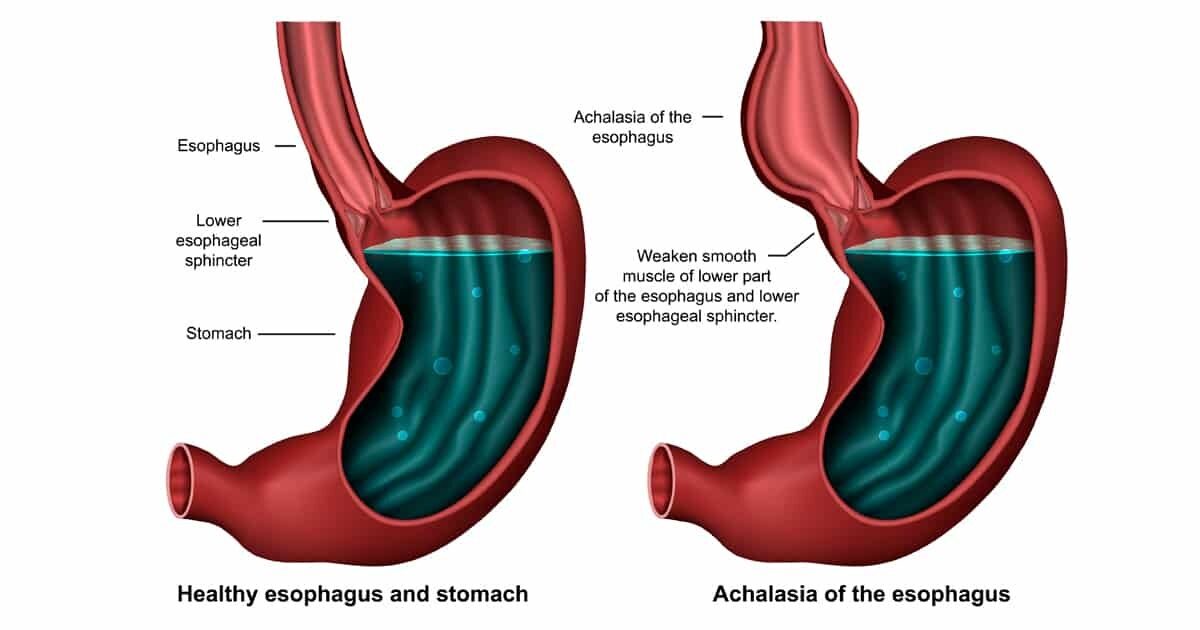 Achalasia is a rare disorder in which your esophagus is unable to move food and liquids down into your stomach. Your esophagus is the muscular tube that transports food from your mouth to your stomach. At the area where your esophagus meets your stomach is a ring of muscle called the lower esophageal sphincter (LES). This muscle relaxes (opens) to …