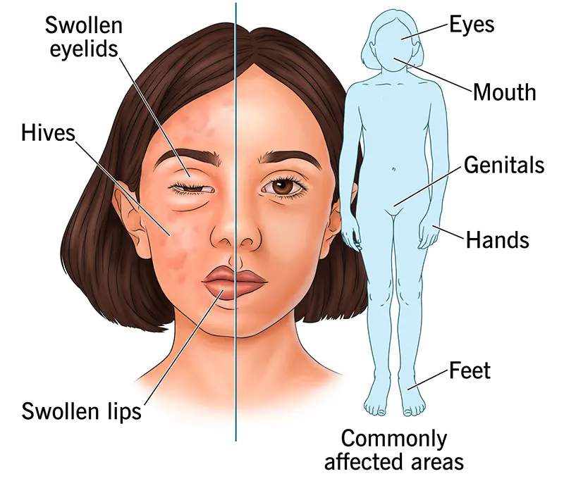 Hives and Angioedema are related skin conditions that cause swelling and discomfort due to an allergic or immune system reaction. Hives, also known as urticaria, appear as raised, itchy welts on the surface of the skin. Angioedema involves deeper swelling beneath the skin, often affecting the face, lips, eyelids, hands, feet, or throat. These conditions can occur together or separately. …