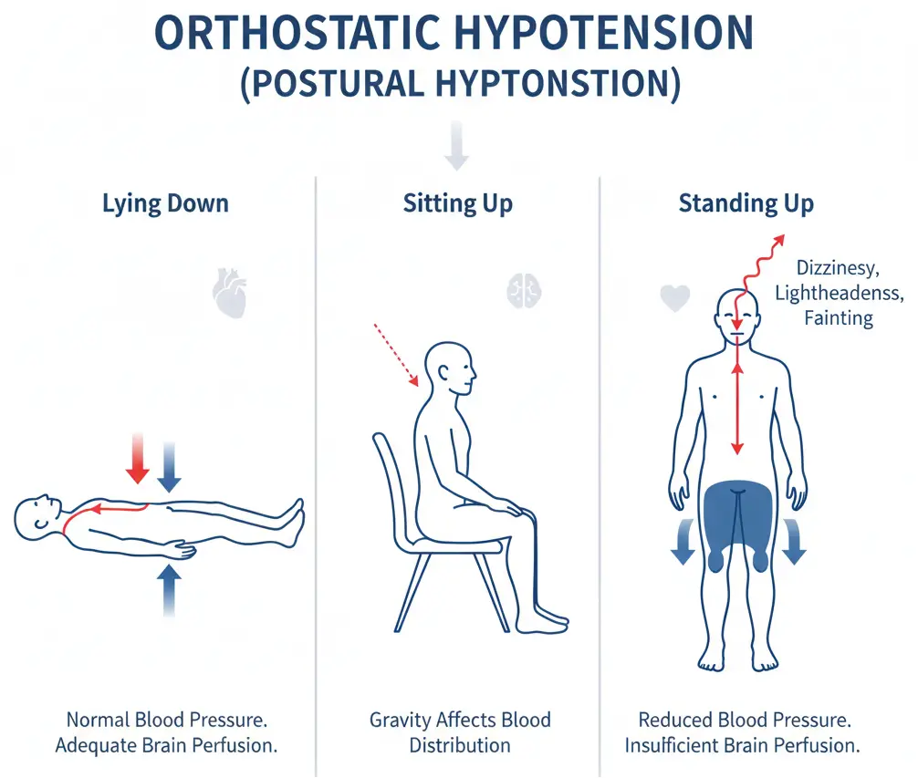 Orthostatic hypotension, also known as postural hypotension, is a condition in which blood pressure drops significantly when a person stands up from a sitting or lying position. This sudden drop reduces blood flow to the brain and can cause dizziness or fainting. It is more common in older adults but can occur at any age, especially in individuals with underlying …