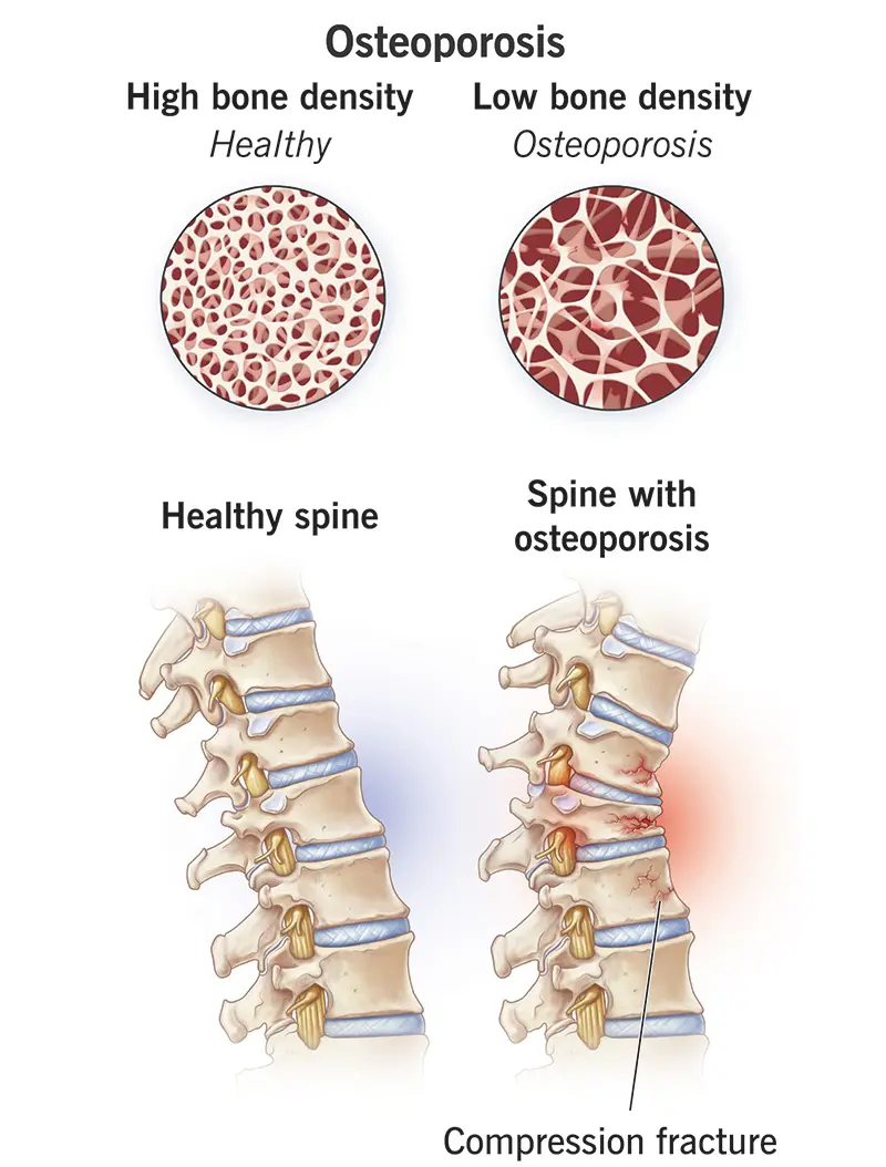 Osteoporosis is a progressive bone disease characterized by decreased bone density and weakened bone structure, which increases the risk of fractures. It often develops silently over many years and is most common in older adults, especially postmenopausal women. Bones most frequently affected include the spine, hips, and wrists. Symptoms Osteoporosis is often called a “silent disease” because bone loss occurs …