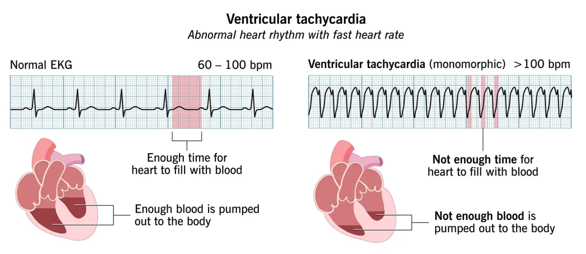 Ventricular tachycardia is a serious heart rhythm disorder in which the lower chambers of the heart, called the ventricles, beat very fast due to abnormal electrical signals. This rapid rhythm prevents the heart from pumping blood effectively, which can reduce blood flow to the brain and other vital organs. Ventricular tachycardia may last only a few seconds or persist for …