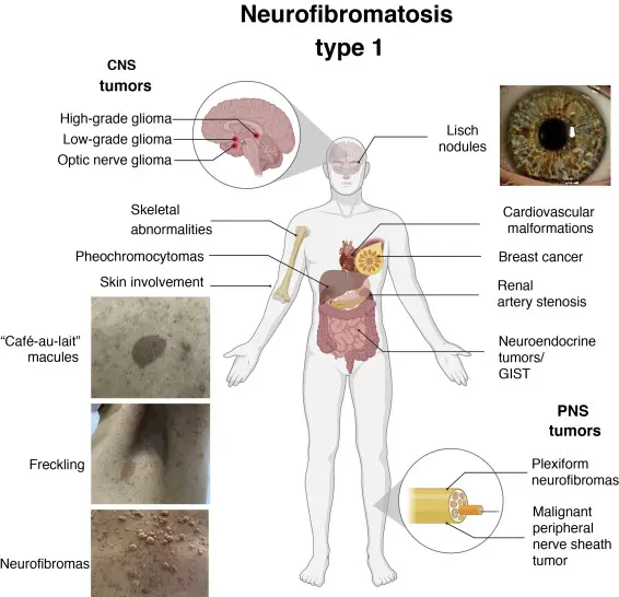 Neurofibromatosis type 1 is a genetic disorder that affects the nervous system and causes tumors to grow along nerves throughout the body. It is one of the most common inherited neurological conditions and usually becomes apparent during childhood. The disorder can affect the skin, bones, eyes, and nervous system, with symptoms ranging from mild to severe. Neurofibromatosis type 1 is …