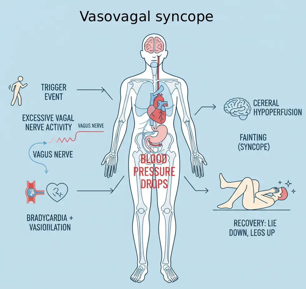 Vasovagal syncope is a common and usually harmless cause of fainting that happens when the body has an exaggerated response to certain triggers. This response leads to a sudden drop in heart rate and blood pressure, reducing blood flow to the brain and causing a brief loss of consciousness. Recovery is typically quick and complete. It can affect people of …