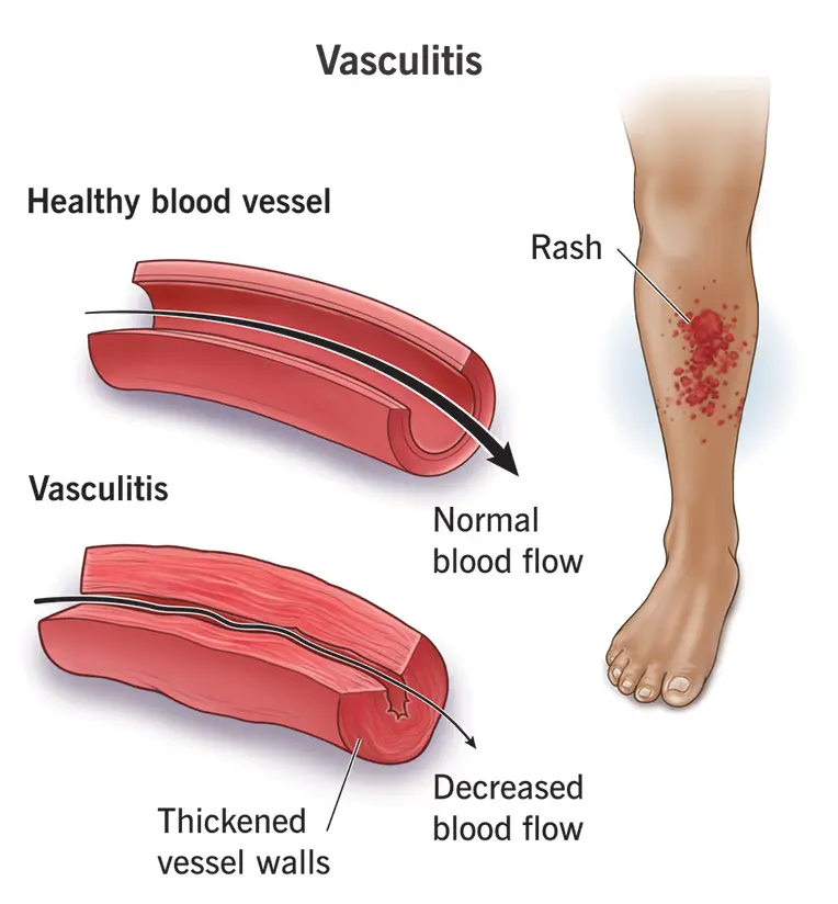 Vasculitis is a group of disorders characterized by inflammation of blood vessels. The inflammation can cause the walls of blood vessels to thicken, narrow, weaken, or scar, which may restrict blood flow to organs and tissues. This reduced blood supply can lead to organ damage and serious health problems. Vasculitis can affect blood vessels of any size, including arteries, veins, …