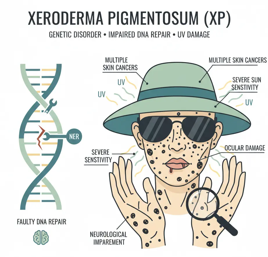 Xeroderma Pigmentosum, often abbreviated as XP, is a rare inherited genetic disorder that affects the body’s ability to repair DNA damage caused by ultraviolet radiation. As a result, people with this condition are extremely sensitive to sunlight and other sources of ultraviolet light. Even limited sun exposure can cause severe skin damage. XP usually becomes apparent in early childhood. Without …