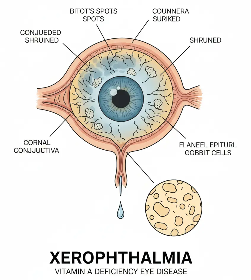 Xerophthalmia is an eye condition caused by a deficiency of vitamin A, leading to dryness of the conjunctiva and cornea. Vitamin A is essential for maintaining healthy vision and the normal function of the eye’s surface tissues. When levels are insufficient, the eyes cannot produce enough moisture, resulting in progressive damage. Xerophthalmia is more common in developing regions and primarily …