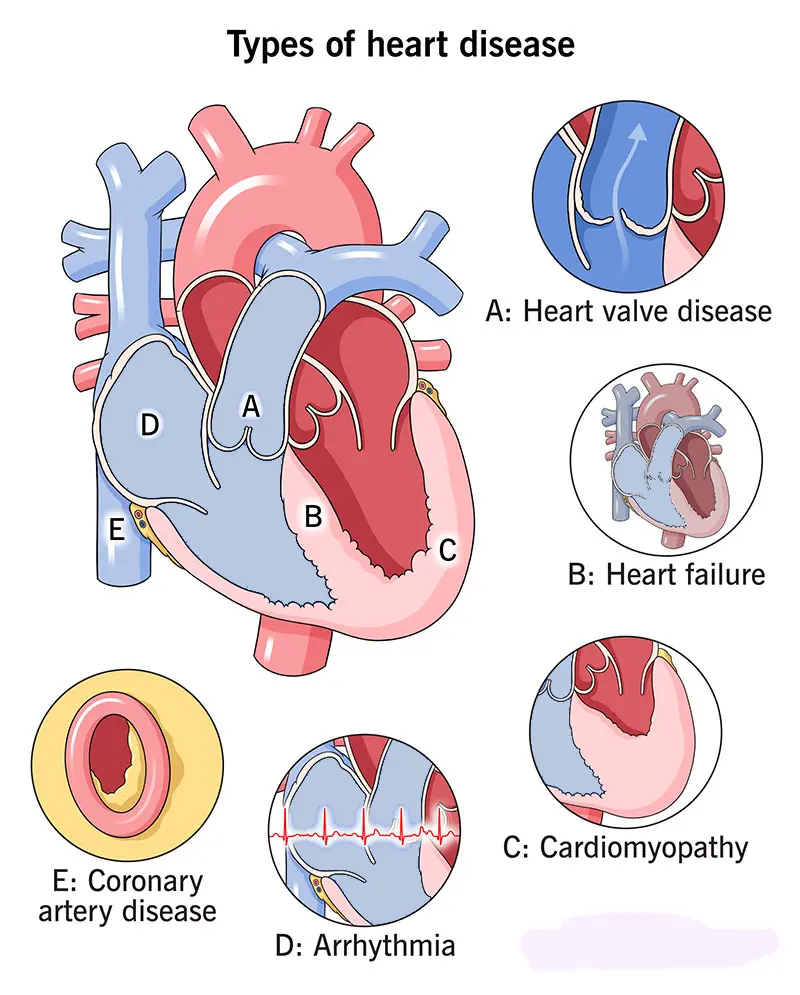 Heart disease is a broad term that refers to several types of conditions affecting the heart. The most common form is coronary artery disease, which involves narrowing or blockage of the coronary arteries that supply blood to the heart muscle. Other types include heart rhythm problems, heart valve disease, congenital heart defects, and diseases of the heart muscle. Heart disease …