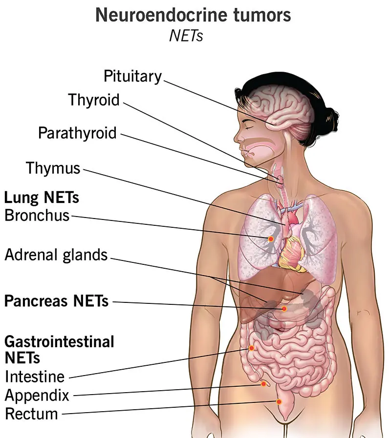 Diagnosis Diagnosis of neuroendocrine tumors usually begins with a physical exam. A healthcare professional may check for signs of cancer, including swollen lymph nodes or indications that the tumor is producing excess hormones. A review of symptoms and medical history is also part of the evaluation. Tests to look for excess hormones Some neuroendocrine tumors produce extra hormones. Blood or …