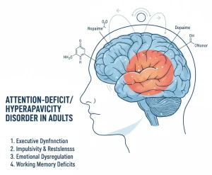 Adult attention-deficit/hyperactivity disorder, commonly known as adult ADHD, is a mental health condition characterized by a persistent pattern of inattention, impulsivity and restlessness. Although often associated with childhood, ADHD begins early in life and may continue into adulthood. In many individuals, symptoms are not recognized or formally diagnosed until adult years.