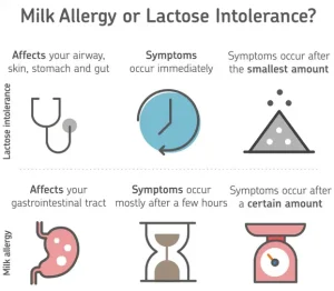 Milk allergy is different from lactose intolerance. Lactose intolerance involves difficulty digesting milk sugar, while milk allergy involves the immune system and can cause serious or even life-threatening reactions.
