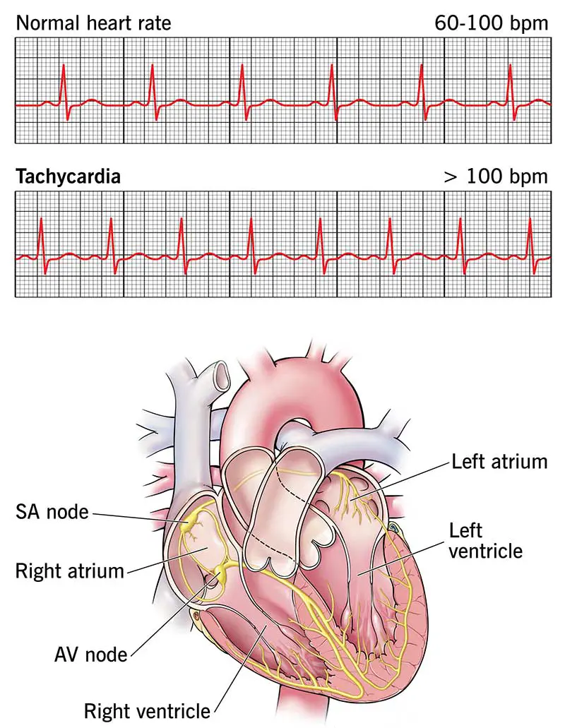 Diagnosis Diagnosing tachycardia involves a thorough physical examination, a detailed medical history and specific tests to confirm a fast heartbeat and identify its cause. During the evaluation, a healthcare professional asks about symptoms, lifestyle habits and any related medical issues. Several tests may be used to pinpoint the source of the rapid heart rate. An electrocardiogram is often the first …