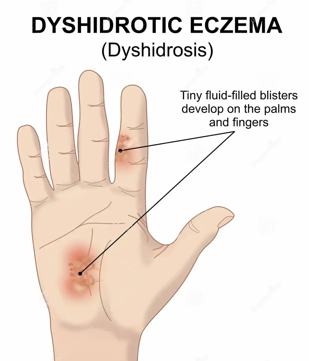 Dyshidrosis, also known as dyshidrotic eczema, is a skin condition characterized by the sudden appearance of small, fluid-filled blisters on the palms of the hands, sides of the fingers, and soles of the feet. The condition is often recurrent and can cause significant discomfort. It commonly worsens during warm weather or periods of stress. Symptoms Symptoms of dyshidrosis may range …
