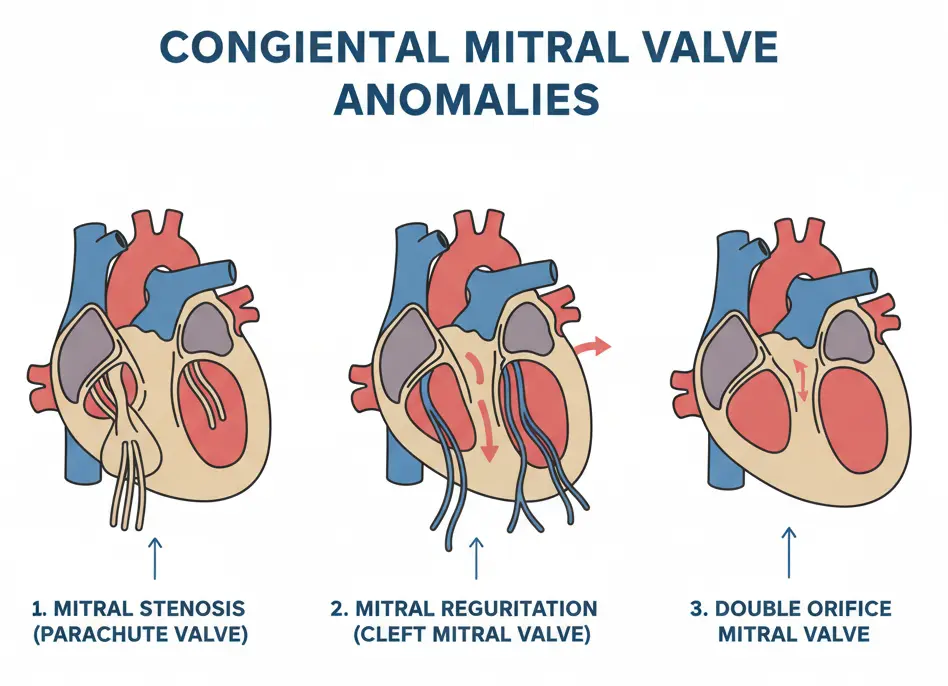 Congenital mitral valve anomalies are structural abnormalities of the mitral valve that are present at birth. The mitral valve controls blood flow between the left atrium and left ventricle of the heart. When this valve does not form normally, it can affect how efficiently blood moves through the heart. These anomalies range from mild defects that cause few symptoms to …