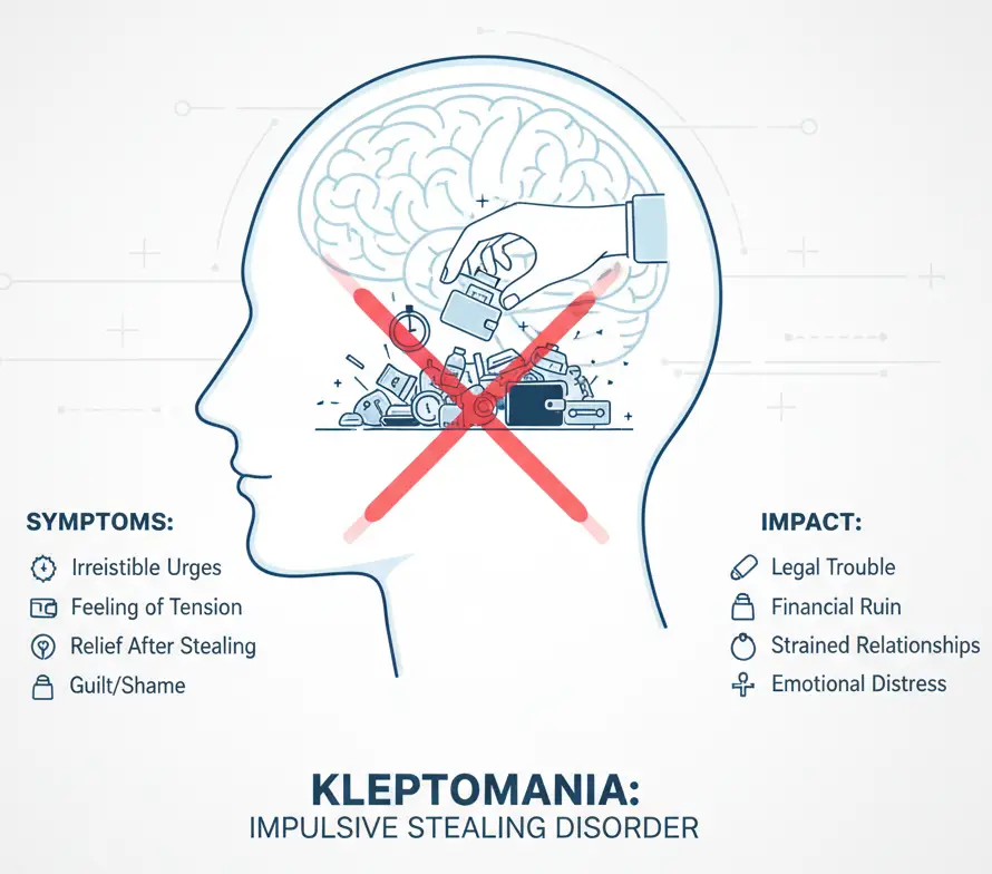 Kleptomania is a rare mental health disorder characterized by a recurring inability to resist the urge to steal items that are not needed for personal use or financial gain. The behavior is impulsive rather than planned and is often followed by feelings of guilt, shame, or distress. Kleptomania is classified as an impulse control disorder and is not the same …