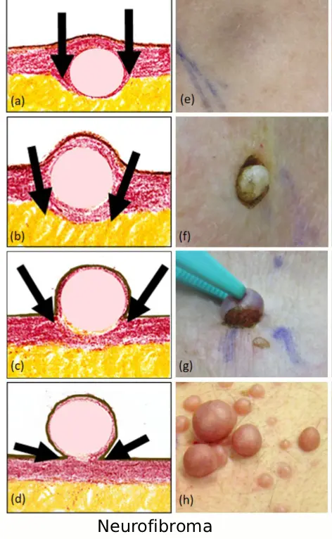 Diagnosis Diagnosis of a neurofibroma typically starts with a physical exam and a review of your medical history by a healthcare professional. Imaging tests may be performed to evaluate the tumor: CT scan or MRI to locate the tumor, detect very small tumors, and assess affected tissues PET scan to determine if the tumor is cancerous (malignant) or benign A …