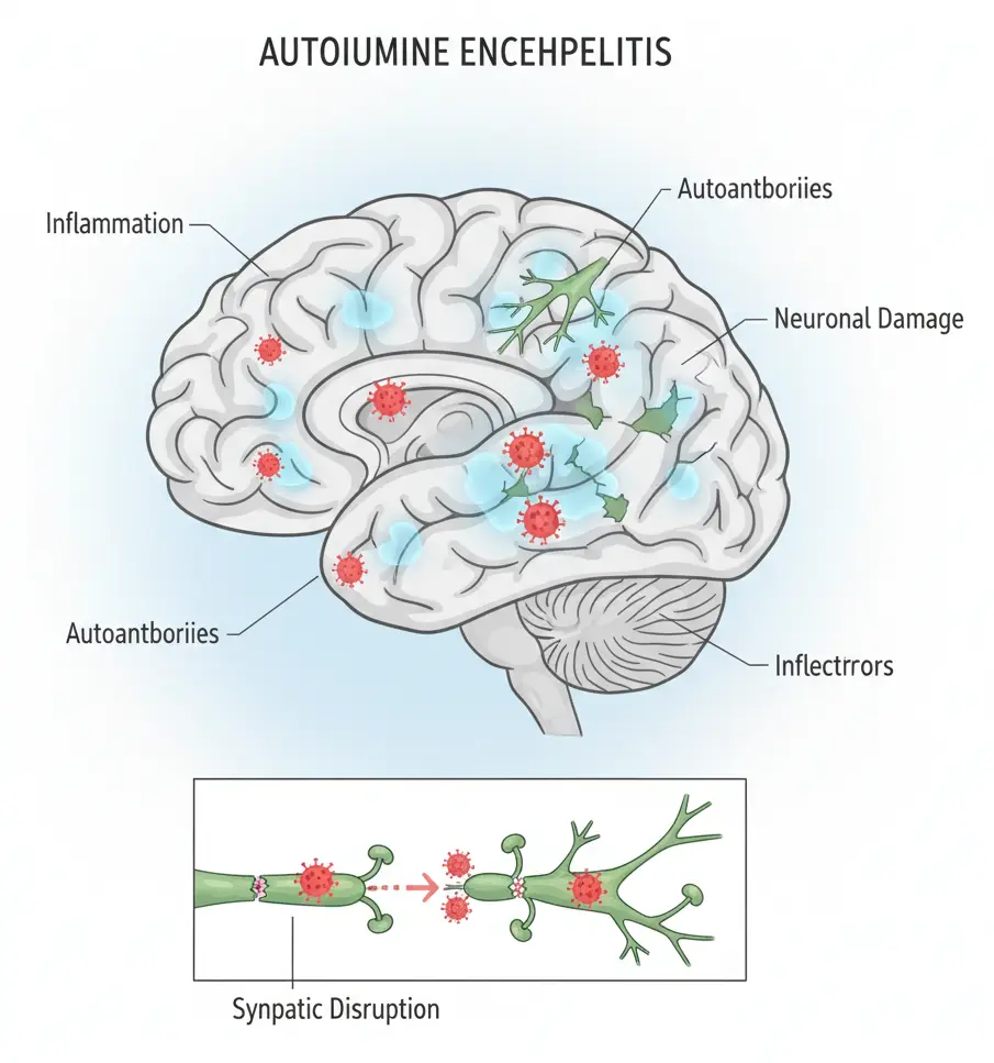 Autoimmune encephalitis (AE) is a group of conditions that causes inflammation in the brain. This occurs when the immune system mistakenly attacks healthy brain cells. Symptoms can vary but often include memory loss, changes in thinking, changes in behavior, and seizures. Autoimmune encephalitis differs from infectious encephalitis, which is caused by viruses or bacteria and requires different treatments. Research suggests …