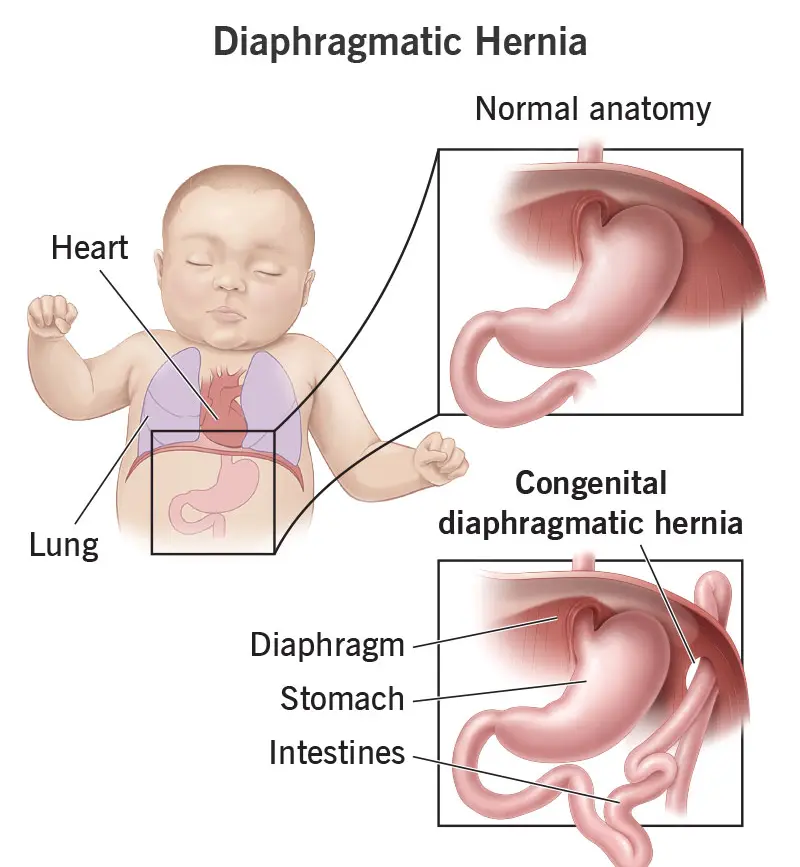 Congenital diaphragmatic hernia (CDH) is a birth defect in which an opening in the diaphragm allows abdominal organs, such as the stomach, intestines, or liver, to move into the chest cavity during fetal development. This displacement interferes with normal lung growth, often leading to underdeveloped lungs and breathing difficulties after birth. CDH is usually present at birth and can range …