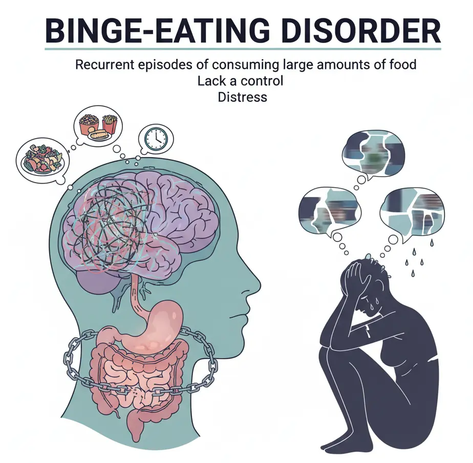 Binge-eating disorder is a serious eating disorder characterized by recurrent episodes of eating unusually large amounts of food in a short period of time, accompanied by a feeling of loss of control. Unlike some other eating disorders, binge-eating disorder does not involve regular behaviors such as purging or excessive exercise to compensate for overeating. The condition can affect people of …