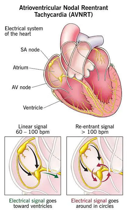 Atrioventricular nodal reentry tachycardia, also called AVNRT, is a type of irregular heartbeat known as an arrhythmia. It is the most common form of supraventricular tachycardia, which means the abnormal rhythm starts in the upper part of the heart. In AVNRT, the heart suddenly begins to beat very fast, often at a rate higher than 100 beats per minute, and …