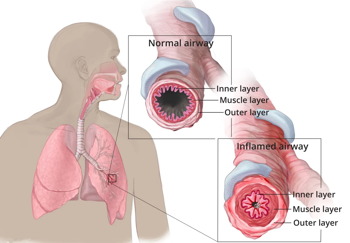 Asthma is a long-term (chronic) lung disease that affects your airways. Your airways are the tubes that carry air in and out of your lungs. When you have asthma, you can’t get air into your lungs because your airways swell and get too narrow. Like a pinched straw, this makes it hard for you to breathe, which can cause wheezing, coughing and chest …
