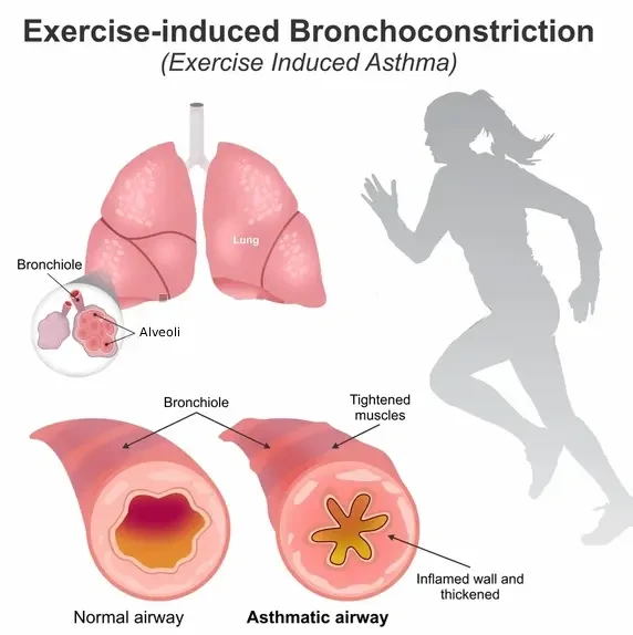 Exercise-induced asthma, also known as exercise-induced bronchoconstriction, is a condition in which physical activity triggers narrowing of the airways, making breathing difficult. It can occur in people with or without chronic asthma and is commonly triggered by vigorous exercise, especially in cold or dry air. Symptoms usually begin during exercise or shortly after stopping and can interfere with physical performance …