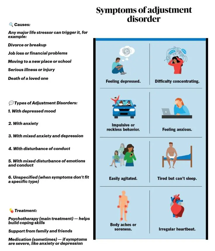 Adjustment disorders are strong emotional or behavioral reactions to stressful life events or changes. These reactions are more intense than would usually be expected and can interfere with daily life, relationships, work, or school performance. Stressful situations such as problems at work, moving away to school, illness, relationship issues, or other major life changes can trigger adjustment disorders. While most …