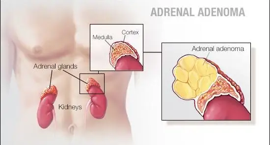 Benign adrenal tumors are masses that aren’t cancer. They form in the adrenal glands. The adrenal glands are part of the endocrine system. These glands make hormones that send messages to nearly every organ and tissue in the body. There are two adrenal glands, one above each kidney. Each gland has two types of tissue: the cortex and the medulla. …