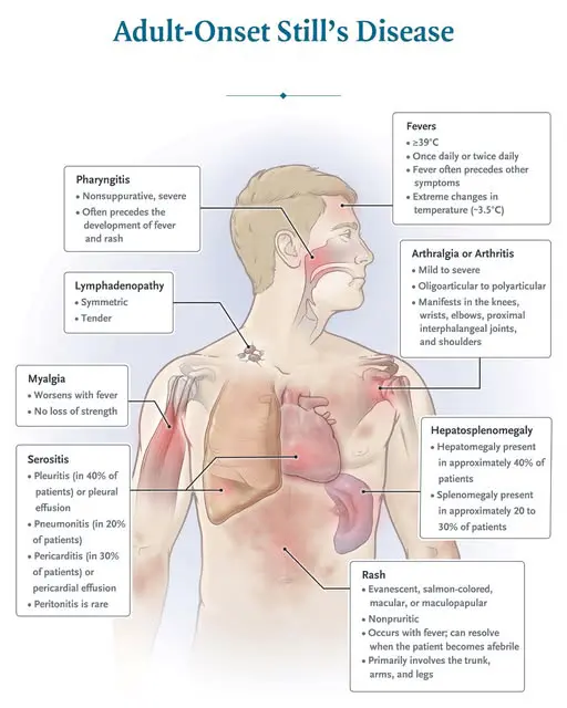 Adult Still disease, also called adult-onset Still disease, is a rare type of inflammatory arthritis. It causes daily high fevers, joint pain and a salmon-colored rash. The condition is considered an autoinflammatory disease, meaning the immune system becomes overactive and causes widespread inflammation without a clear trigger. Adult Still disease can affect people of any age, but it most often …
