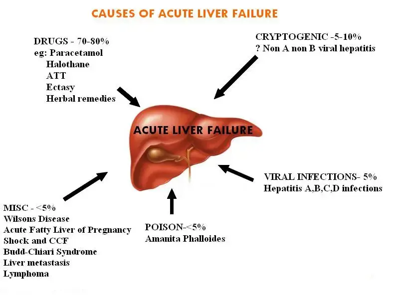 Acute liver failure is a rapid loss of liver function that develops over days or weeks, usually in someone who did not previously have liver disease. It most commonly occurs due to viral hepatitis or the effects of certain medicines, especially acetaminophen. Unlike chronic liver failure, which progresses slowly over time, acute liver failure develops suddenly and can worsen quickly. …
