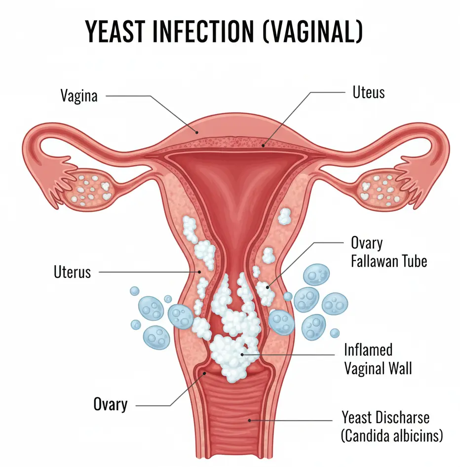 A yeast infection is a common fungal infection caused by an overgrowth of yeast, most often Candida albicans. Yeast normally lives on the skin and inside the body in small amounts without causing harm. When the balance of microorganisms is disrupted, yeast can multiply and lead to infection. Yeast infections most commonly affect the vagina, mouth, skin folds, and diaper …