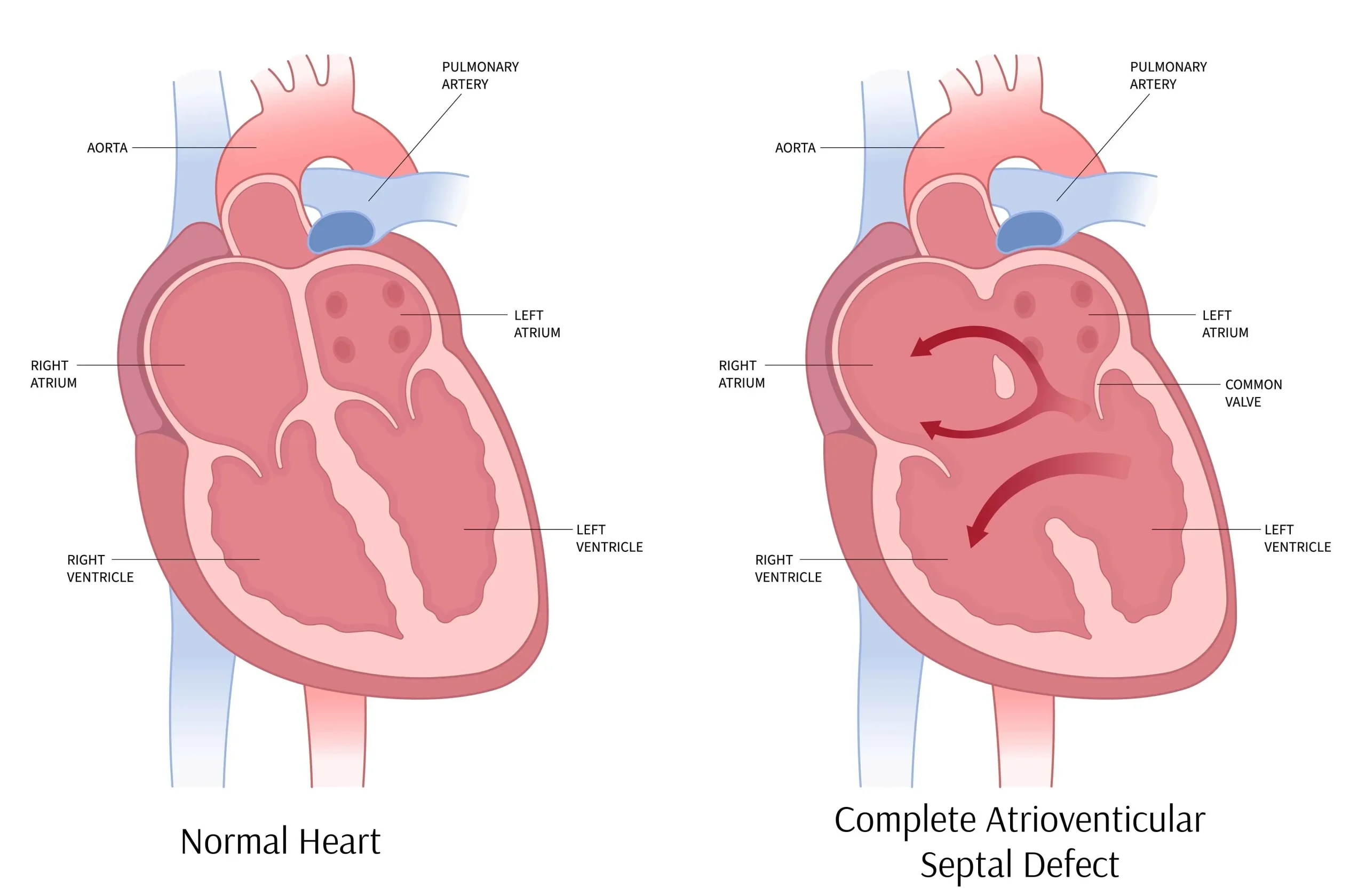 Atrioventricular septal defect is a congenital heart defect, meaning it is present at birth. It involves a combination of structural problems affecting the center of the heart. Children born with this condition have a hole in the wall that separates the heart chambers, along with abnormalities of the heart valves that regulate blood flow.