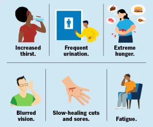 If symptoms of severe hyperglycemia appear, check your blood sugar immediately. If it is 240 mg/dL (13.3 mmol/L) or higher, use a urine ketones test kit. A positive test could indicate diabetic ketoacidosis, which requires medical attention.