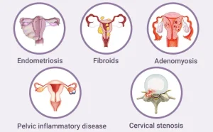 • Laparoscopy. While not usually necessary, laparoscopy can detect underlying conditions like endometriosis, adhesions, fibroids, ovarian cysts, or ectopic pregnancy. During this outpatient procedure, tiny incisions are made in the abdomen, and a fiber-optic tube with a camera allows the doctor to view the abdominal cavity and reproductive organs.