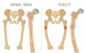 During the exam, a healthcare professional gently presses on the child’s bones to check for irregularities. Certain areas may receive closer attention. Babies with rickets may have softer skull bones and delays in the closure of the soft spots known as fontanels. An exaggerated bowing of the legs, more noticeable than the natural bowing seen in many toddlers, is a common sign. Some children also develop changes in the rib cage that flatten the chest and cause the breastbone to protrude. Larger or thicker wrists and ankles can be another sign of rickets.