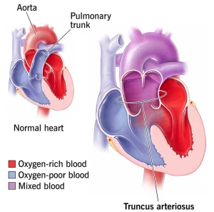 Truncus arteriosus is usually diagnosed soon after birth. A baby may appear blue or gray and have difficulty breathing.