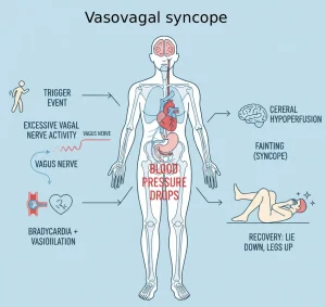 Diagnosing vasovagal syncope usually begins with a physical examination. During this exam, your healthcare professional listens to your heart and checks your blood pressure. They may also gently massage the main arteries in your neck to see if this action makes you feel lightheaded or faint.
