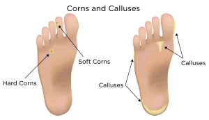 Corns and calluses are thickened areas of skin that develop as a protective response to repeated friction, pressure, or irritation. They most commonly form on the feet, especially on toes, soles, and areas that bear weight. While generally not serious, corns and calluses can cause discomfort or pain, particularly when pressure continues.