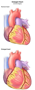An enlarged heart, medically referred to as cardiomegaly, is a condition in which the heart becomes larger than normal. This enlargement usually occurs because the heart muscle has to work harder to pump blood effectively. An enlarged heart is not a disease itself but a sign of an underlying heart or systemic condition. Depending on the cause and severity, it may be temporary or progressive and can affect the heart’s ability to function properly.