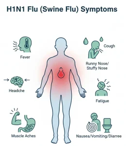 H1N1 flu, commonly known as swine flu, is a contagious respiratory illness caused by the influenza A (H1N1) virus. It spreads from person to person in a manner similar to seasonal influenza, primarily through respiratory droplets released when an infected person coughs, sneezes, or talks. While many cases are mild, H1N1 flu can cause severe illness, especially in high-risk individuals, and may require hospitalization.