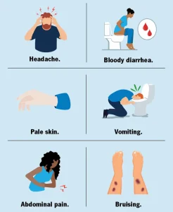 Symptoms of hemolytic uremic syndrome often begin after an episode of diarrhea, which may be bloody.