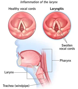Laryngitis occurs when the larynx becomes inflamed due to irritation, infection, or overuse.