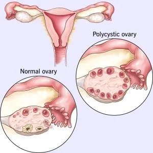 In PCOS, the ovaries may develop numerous small fluid-filled sacs called follicles that fail to regularly release eggs. As a result, ovulation may occur less often or stop completely. PCOS can affect menstrual cycles, fertility, metabolism, and physical appearance. Early diagnosis and proper management can help reduce symptoms and prevent long-term health complications.