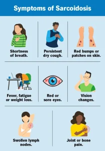 Symptoms of sarcoidosis vary depending on which organs are affected. Some people may not experience noticeable symptoms, while others develop persistent or progressive issues.
