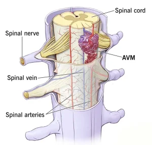 If untreated, spinal arteriovenous malformations can cause permanent spinal cord damage. Progressive weakness, chronic pain, and loss of bladder or bowel control may occur. Bleeding into or around the spinal cord is a serious complication that can result in sudden neurological deterioration, paralysis, or long-term disability.