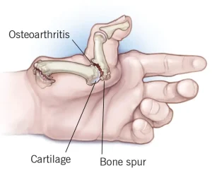 Several factors can contribute to this cartilage damage, including joint wear over time, injuries to the thumb, and genetic predisposition. Repetitive stress on the thumb joint can also accelerate the breakdown of cartilage.