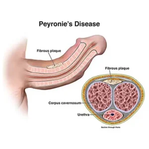 Peyronie disease is a condition in which fibrous scar tissue develops inside the penis, causing curved or painful erections. The scar tissue, known as plaque, forms under the skin of the penis and can interfere with normal flexibility during an erection.