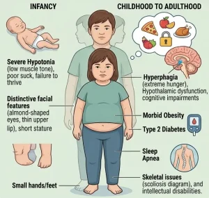 Prader-Willi Syndrome can lead to several long-term complications if not properly managed: