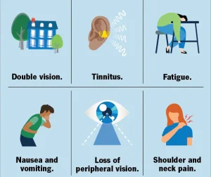 Symptoms of pseudotumor cerebri are mainly related to increased pressure inside the skull.